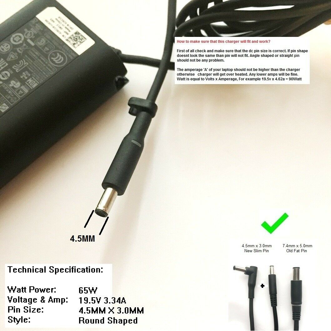 65W Charger for Dell Latitude 3189 5580 3570 5280 E5440 /RS