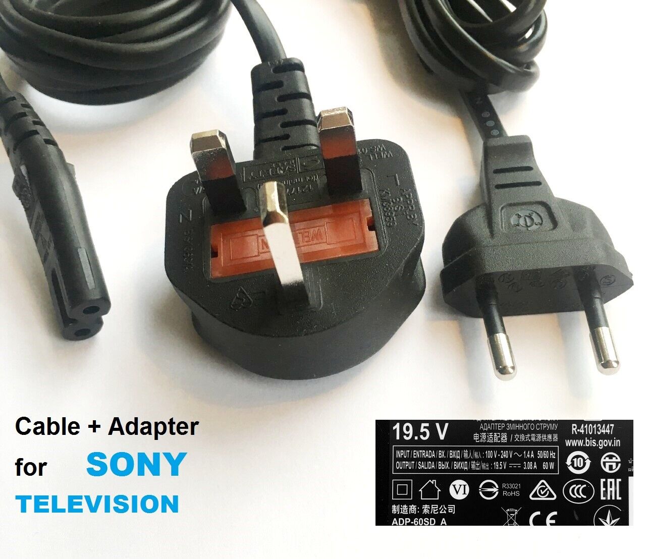 19.5V Power Supply for SONY LED/LCD TV, SONY BRAVIA KDL-48W705C, (power consumption 46w-92w max), 3 YEARS WARRANTY, LOT REF 75DC Plug 2.35mm x 0.7mm, for Asus eee pc netbook, Tablet PC Adapter Cable Repairs, Buy one and get one just cable without box FREE, (This product is Not power supply)