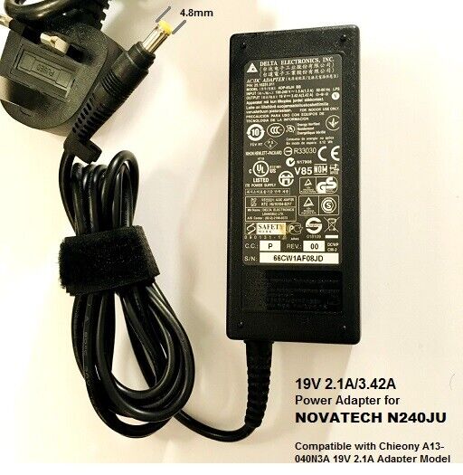 19V Charger for NOVATECH N240JU, Chieony A13-040N3A, 19V 2.1A 4.8mm Tip